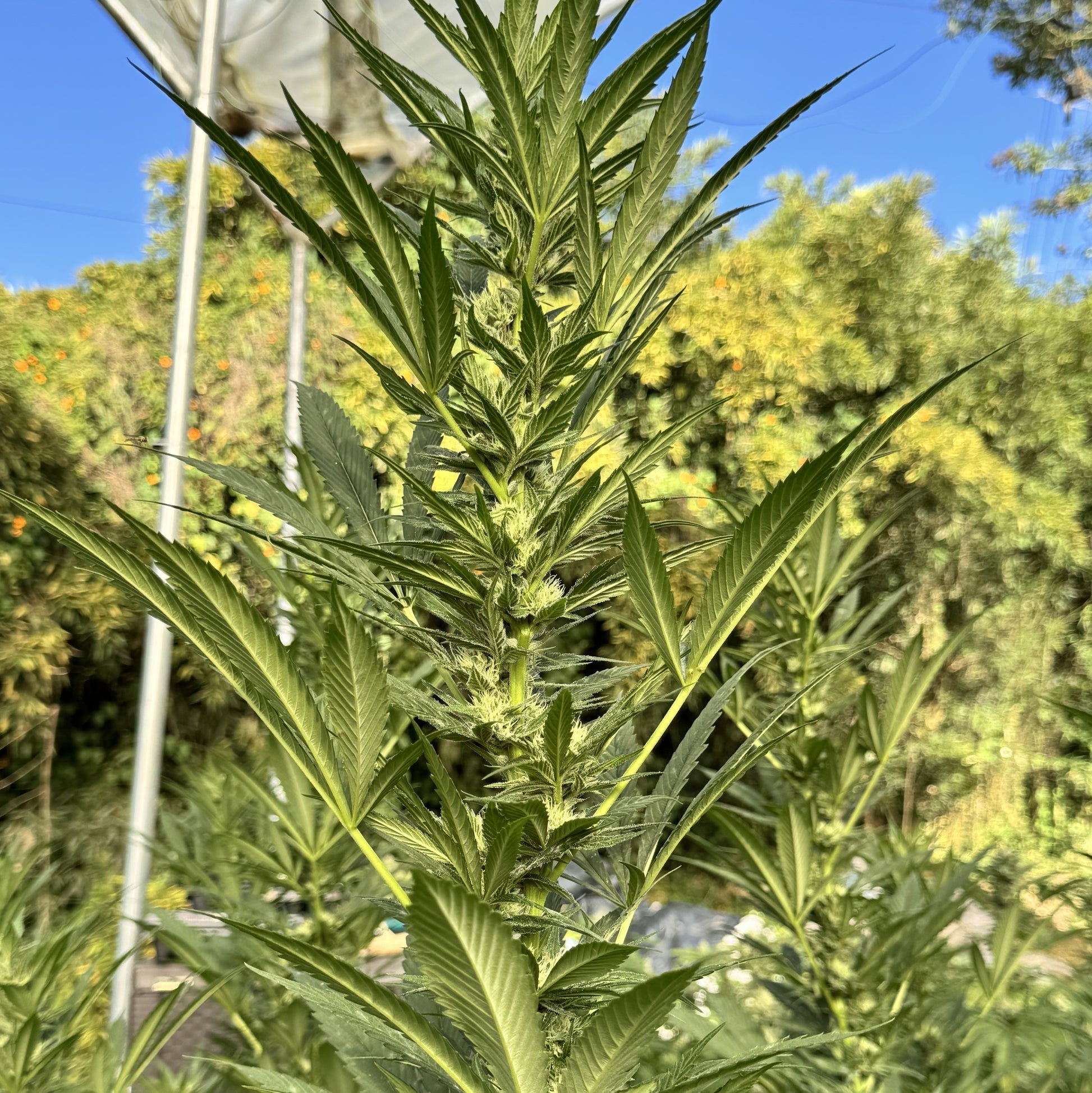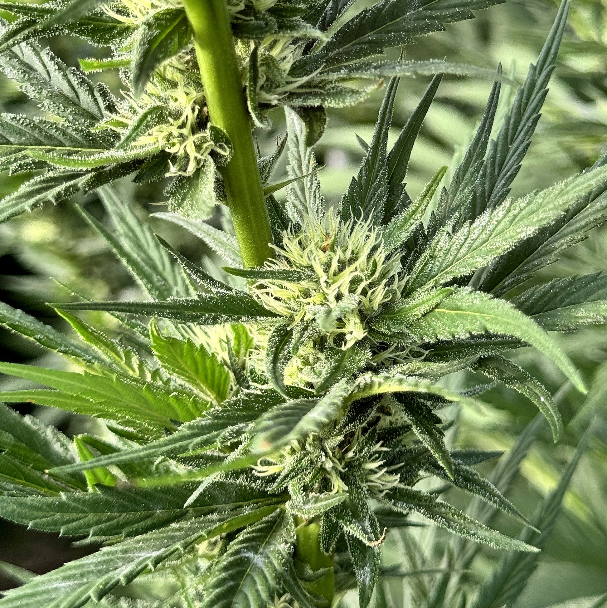 Appearance: Tall, elegant plants with elongated buds, fine leaf serration, and golden trichome coverage at maturity.