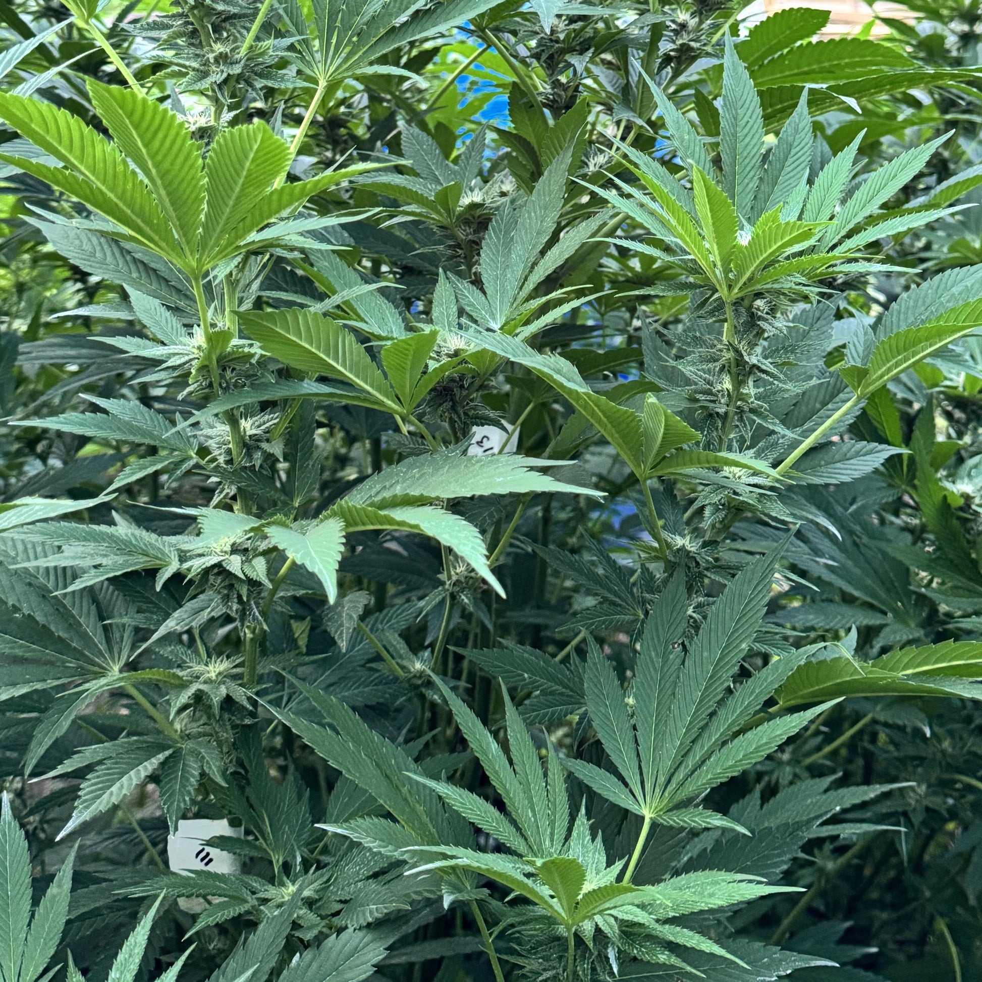 Lulo grows tall with long internodes and highly expressive branching. Its leaves are medium-narrow, showing light green hues and fine serration consistent with equatorial hybrids. Plants form dense vertical clusters of buds that build progressively up the stem, each node swelling with resin-laden calyxes. The foliage remains open and airy, ideal for humidity control, and its stems exhibit natural flexibility for wind or trellis adaptation. This is a vigorous, high-oxygen cultivar that expresses best under strong sunlight and living soil.