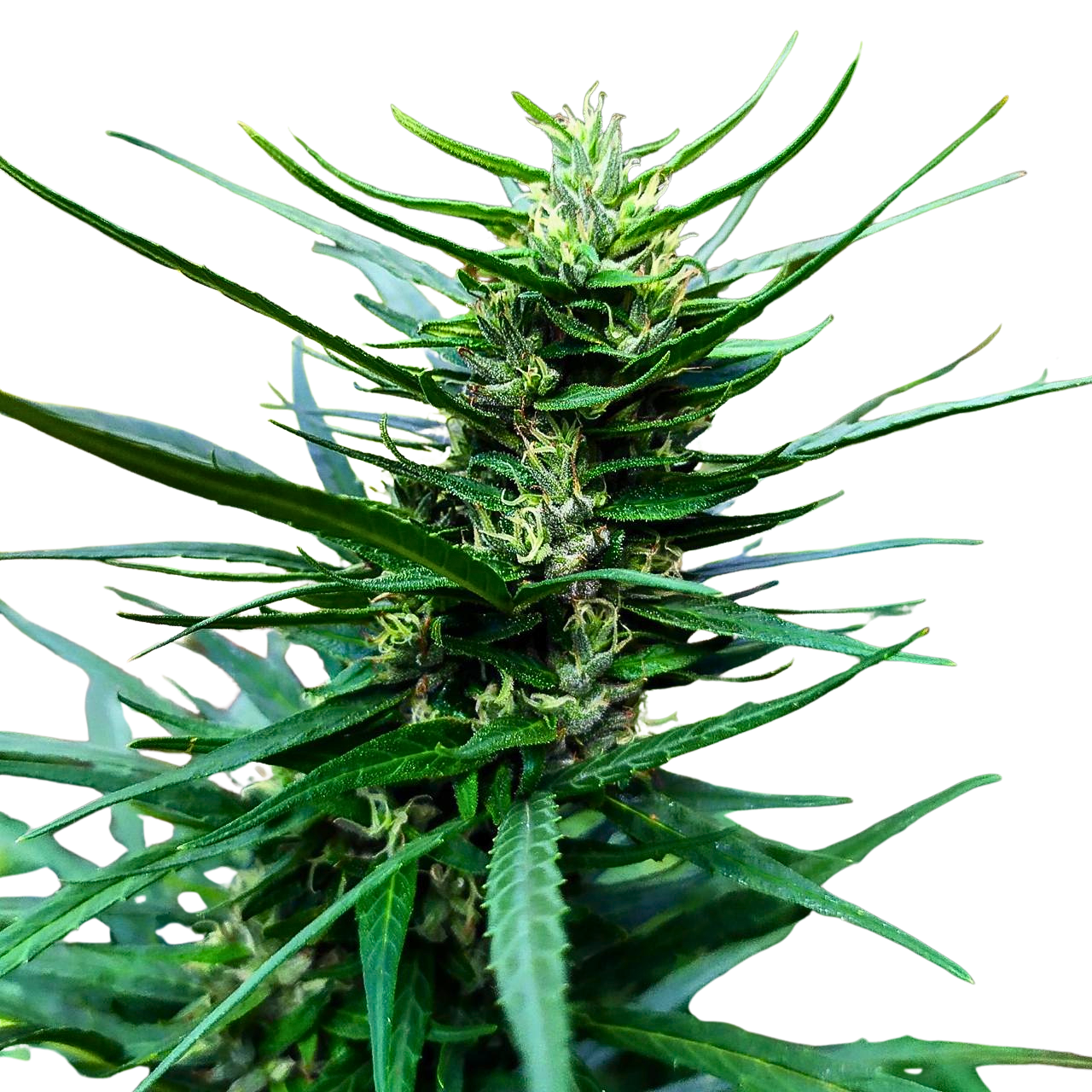 Appearance: Long, narrow sativa buds on extended branches with bright pistils and fine resin coverage.