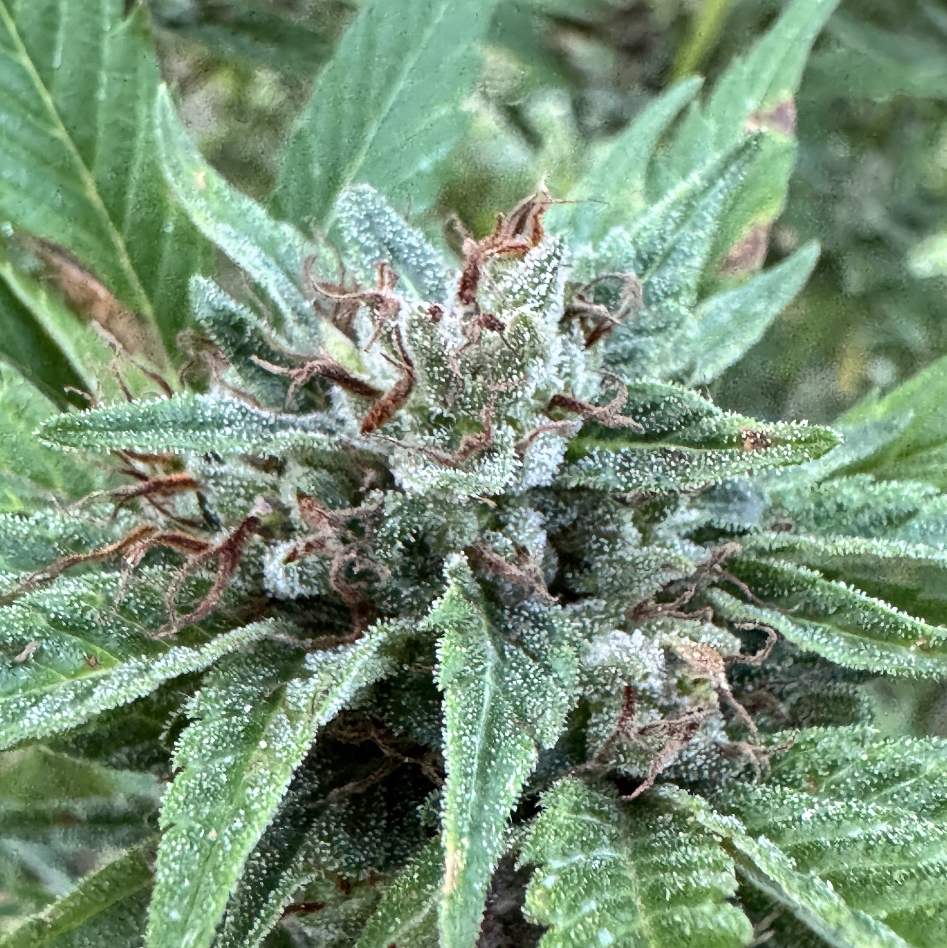 Resin production begins early and increases steadily through mid-flower. Trichomes form thick layers across both calyxes and sugar leaves. Plants respond best to organic feeding and stable moisture, with strong results under natural light.