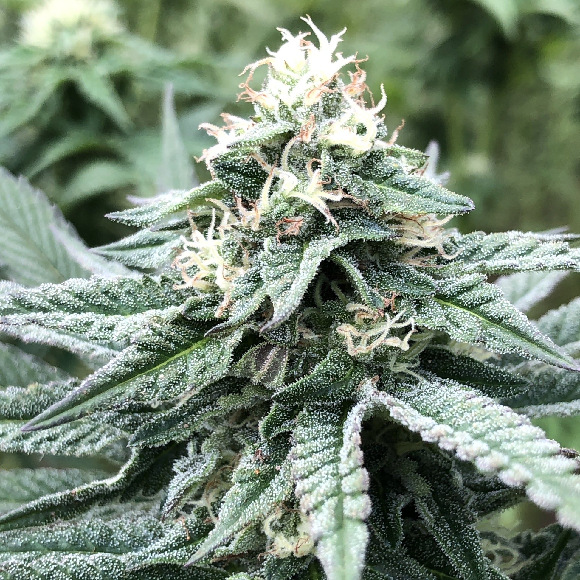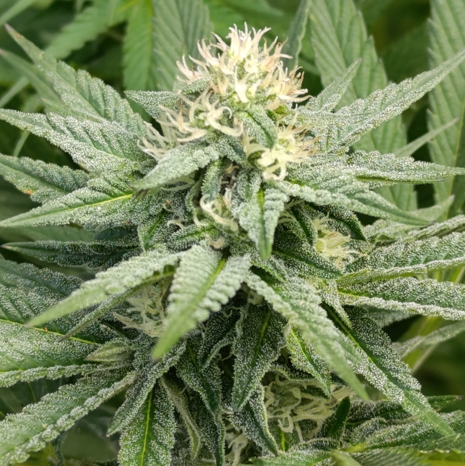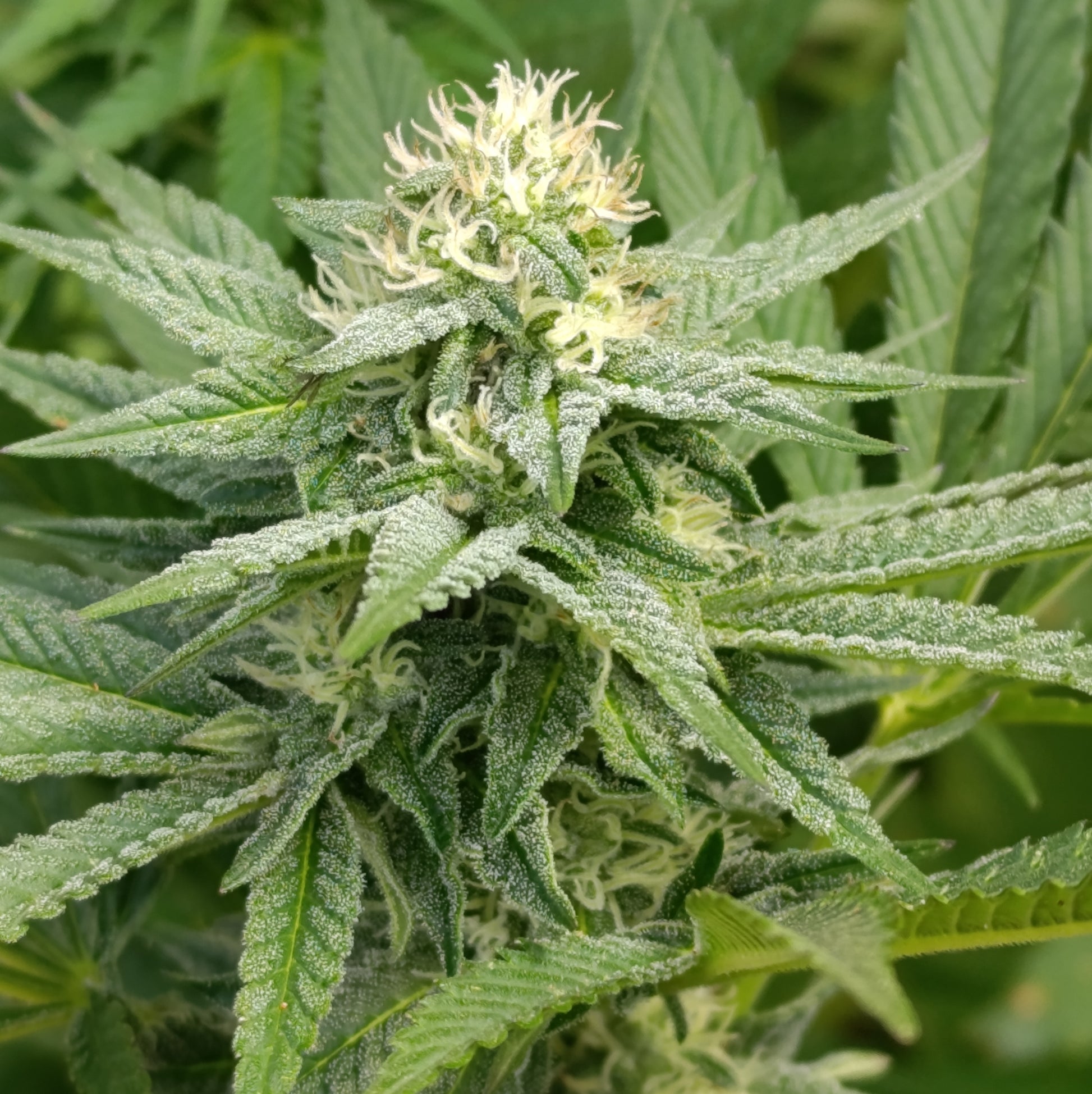 Plants exhibit medium-to-tall growth with open, well-structured branching. Internodes remain tight enough to support dense bud formation while maintaining airflow. Every branch fills with compact, crystalline flowers, displaying excellent resin coverage across calyxes and sugar leaves. The foliage is medium-narrow with a rich green tone, and plants maintain strength even in poor soils or shifting weather.